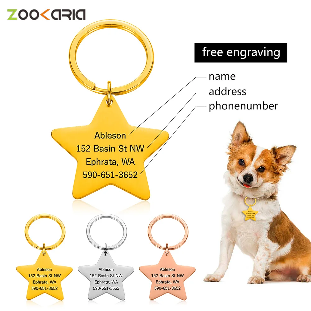 Name: Etiquetas personalizadas para perro y gato, colgante con nombre del número de teléfono, Collar, accesorios para mascotas, pentagrama